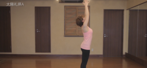 ⑩吸う息で、両手を持ち上げながら頭上で合掌する。